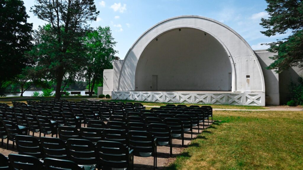 Park in Manchester, Iowa, featuring a playground, shelters, bandshell, rose garden, and the Kramer Aquatic Center.