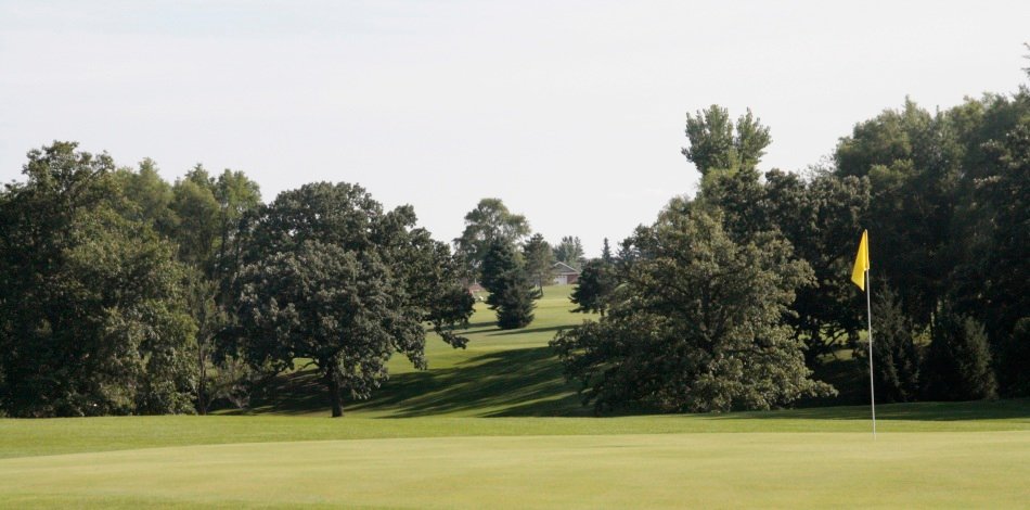 Public, 9-hole golf course in Manchester, Iowa, featuring a driving range and a clubhouse.