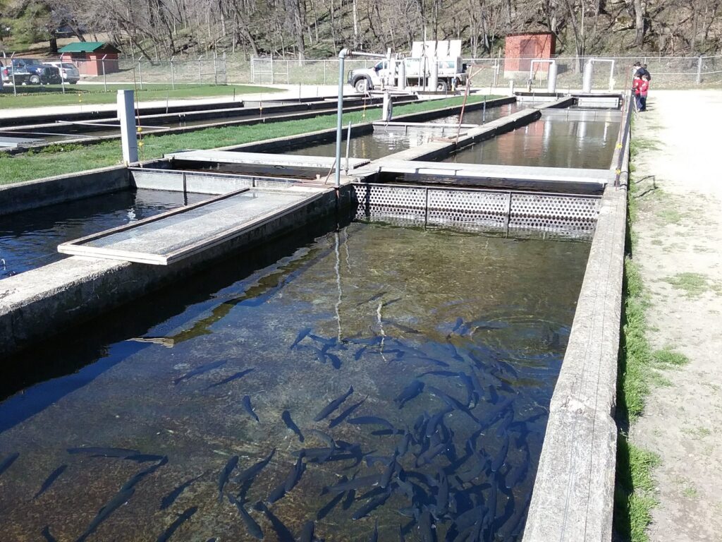 Iowa’s trout brood stock station, producing over 600,000 fish annually; visitors can feed the trout.
