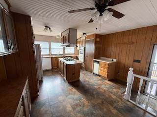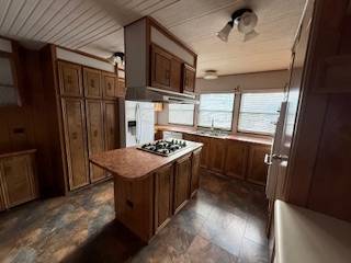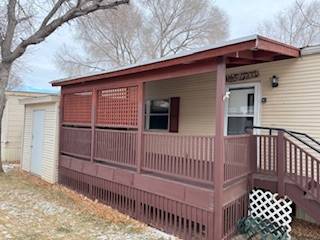 Well-maintained manufactured home located in Emerald River Estates in Green River, Wyoming. This 1981 single-wide (14′ x 67′) offers a comfortable layout with generous storage and inviting living spaces. The home features a spacious kitchen with abundant cabinetry, a center island with gas cooktop, and appliances included. The open living area is highlighted by a stone hearth with freestanding stove, providing warmth and character. Large windows allow for ample natural light throughout. Additional features include a covered front porch, fully fenced yard with an established sprinkler system, and a storage shed for added convenience. Washer and dryer are included. This home is park-owned with a clear Wyoming title. Monthly lot rent is $550. Buyer must obtain park approval.