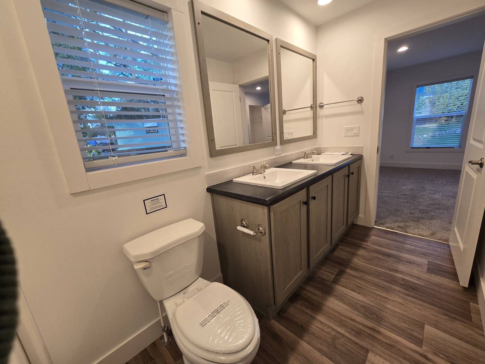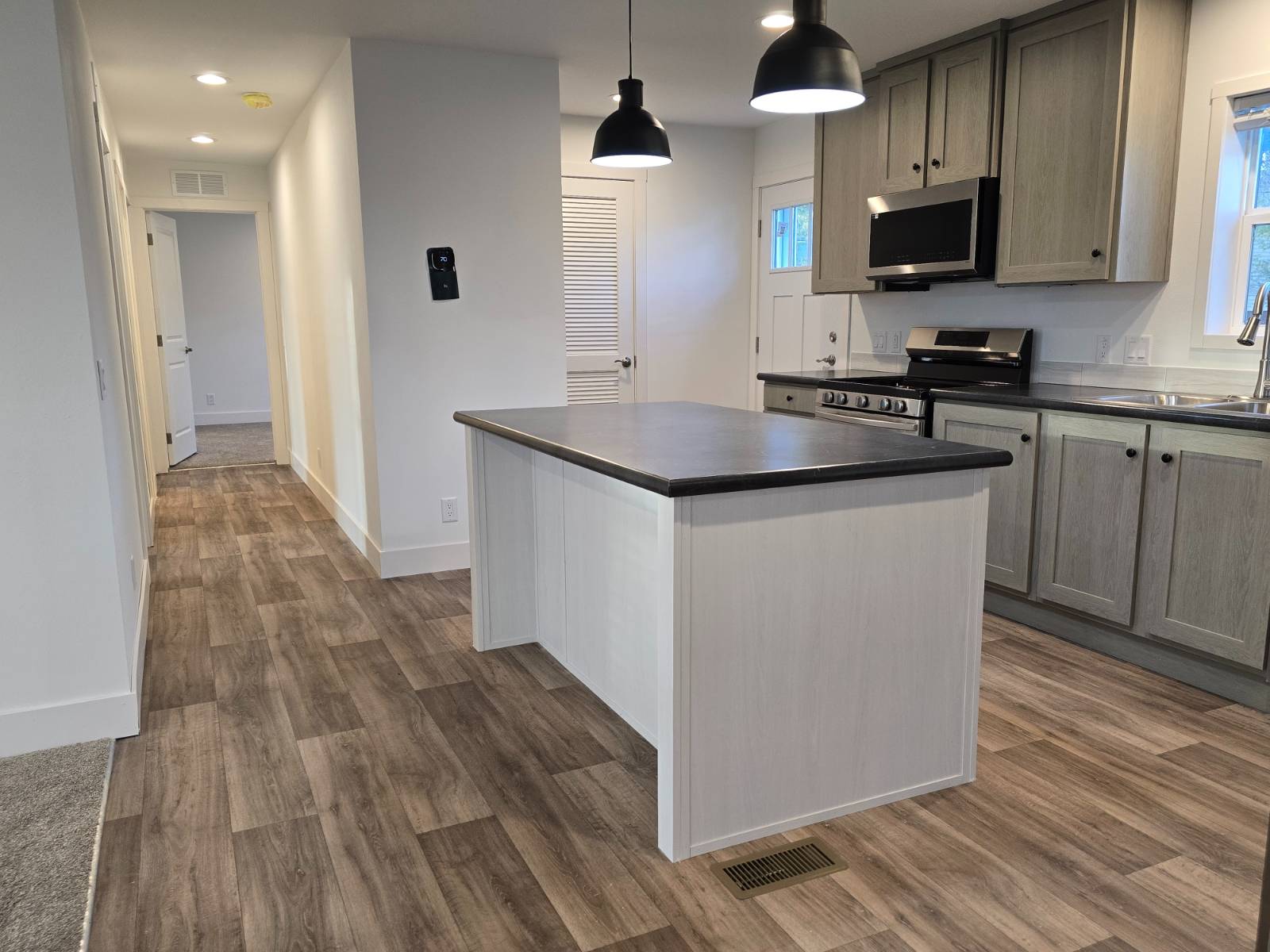 Cozy NEW ranch style home delivers 1,305 square feet of thoughtfully designed space, with 3 bedrooms and 2 bathrooms and a charming front porch. Relax and enjoy home sweet home! This manufactured home invites warmth and style, featuring a cozy living area that flows seamlessly into a modern kitchen and dining space. The private bedrooms are perfect for relaxation, while the open layout enhances the home’s spacious feel. This home blends practicality with charm, ideal for both quiet evenings and lively gatherings. The modern kitchen features a large center island, ample storage & counter space, soft close drawers and you’ll love the modern look of the sleek Samsung stainless steel appliances. Relax at the end of a long day in the spacious primary bedroom with a large walk-in closet, and private primary bathroom with double sink vanities & mirrors.