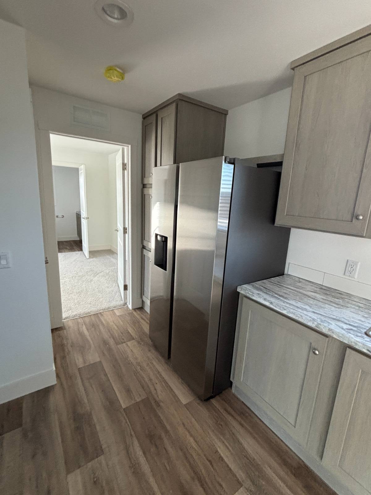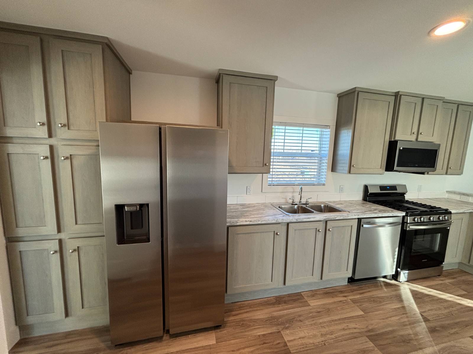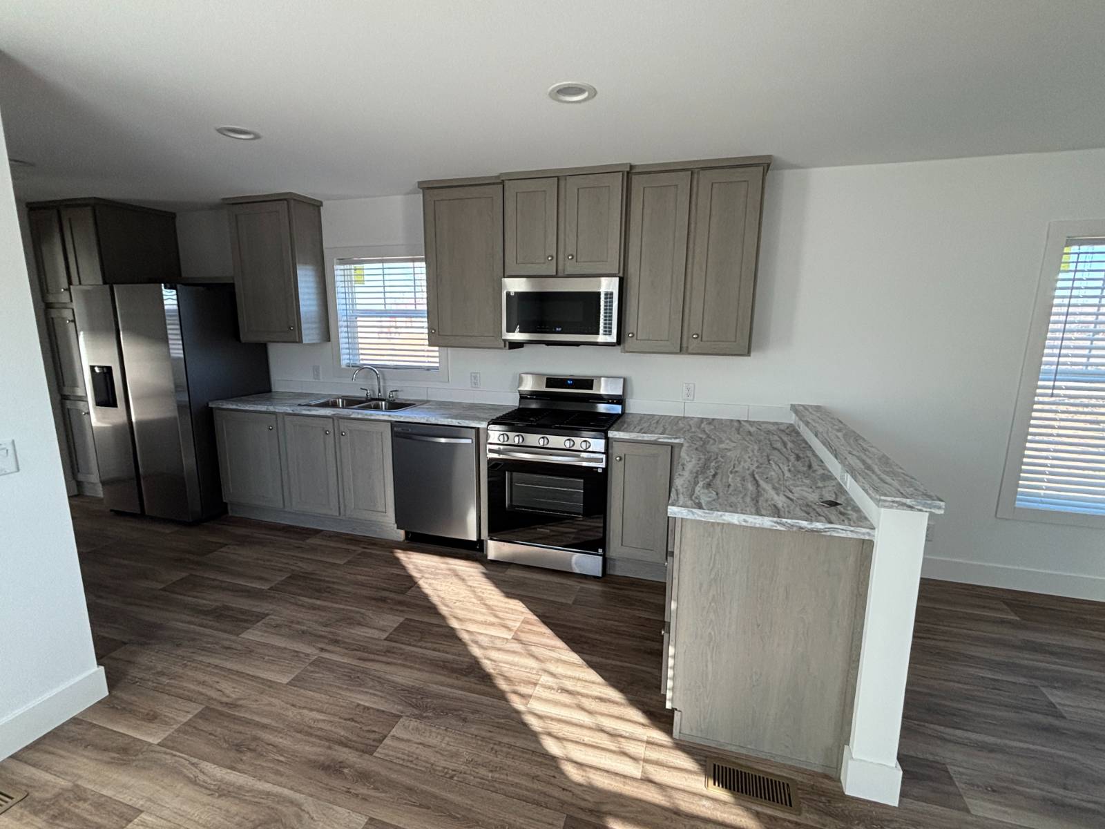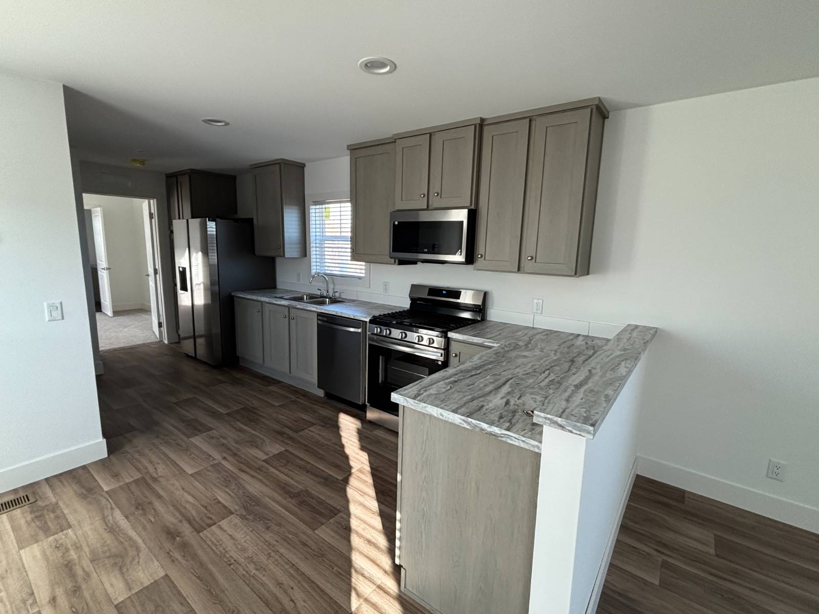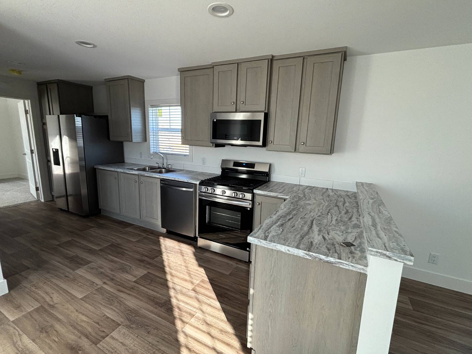 Brand new open concept home. This home features an open concept but it also has so much more to the home. The kitchen has all the appliances that come with the home. All new. Refrigerator, gas stove, microwave and dishwasher. This home has its own laundry room inside the home. The primary bedroom has a private bathroom and a large closet. The second bedroom has a roomy flow to it making it cozy and warm, great for a nursery or children’s room. The third room has a nice look out window and very roomy. There is a guest bathroom with a tub and shower between the other two rooms.. There is a build in desk in this home right across from the two bedrooms.